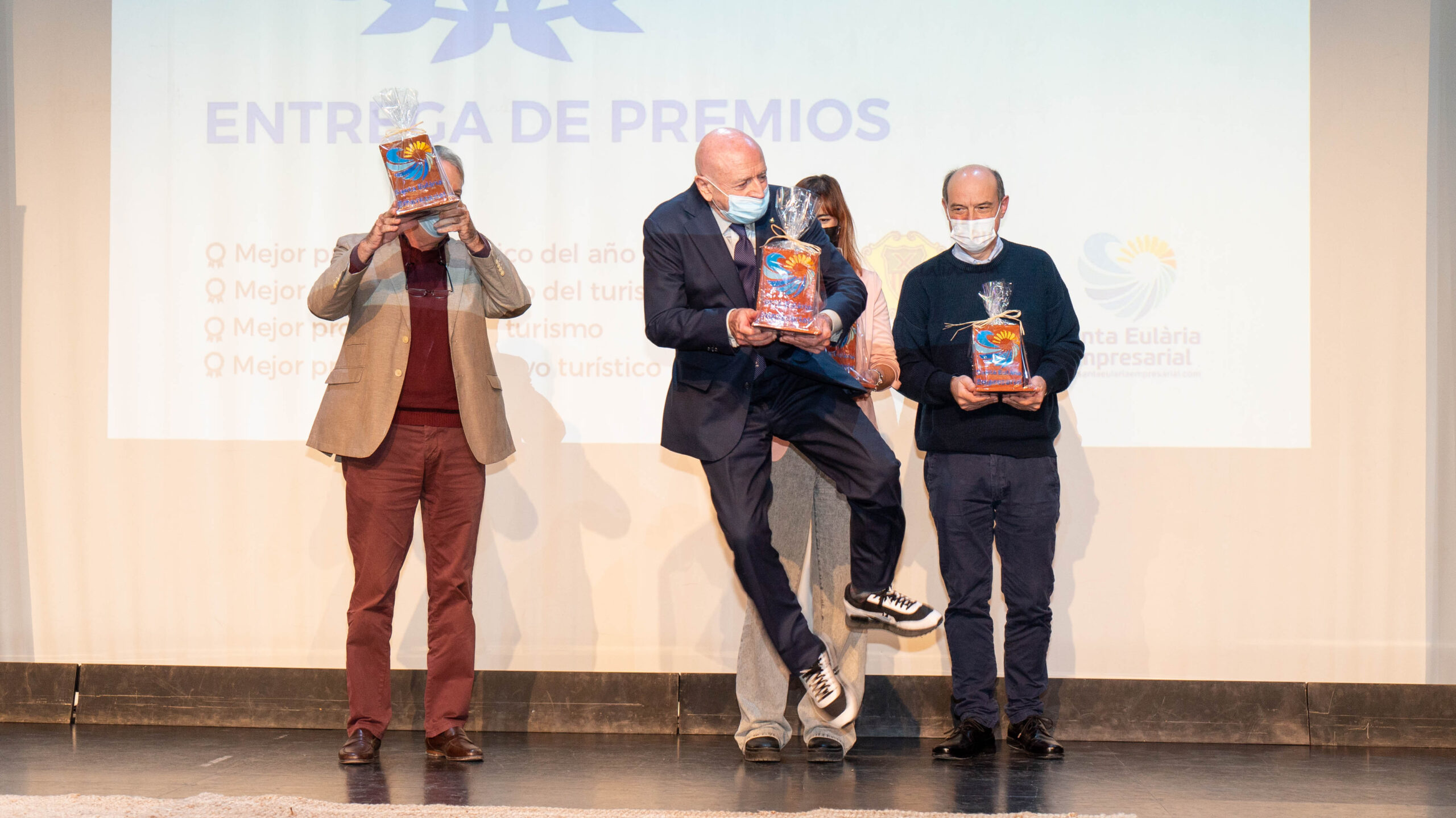 Recogen los premios Mariano Ramón, hijo de Don Ernesto Ramón Fajarnés, George Roe, propietario del grupo hotelero familiar Intercorp Hospitality Group y Don Antonio Torres, técnico de empresas y actividades turísticas.